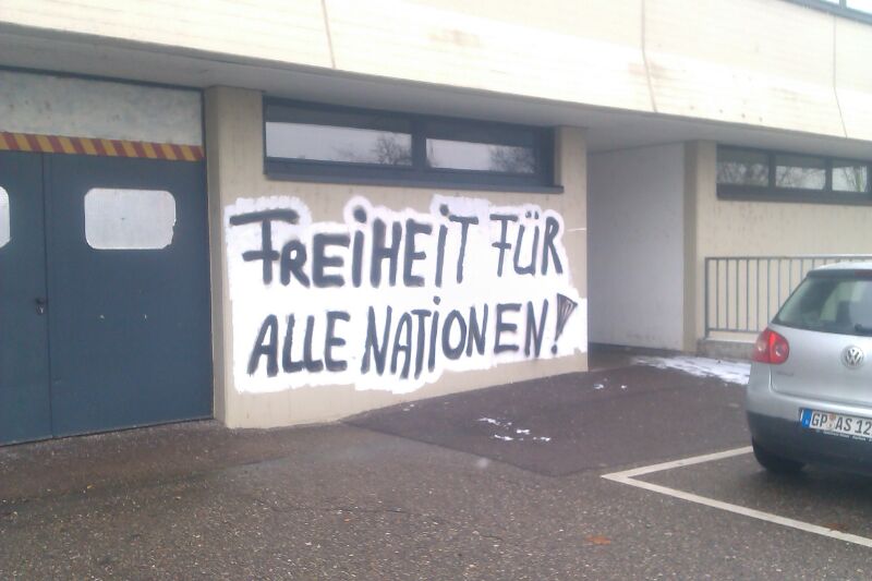 Am vergangenen Wochenende beschmierten bislang unbekannte Täter (wobei die Organisation der Täter klar ist..) mehrere Wände im Bereich Bahnhof, Erich-Kästner-Gymnasium und Schlossstraße. Durch das Besprühen mit Farbe entstand ein Schaden in Höhe von mehreren Hundert Euro.