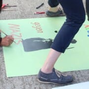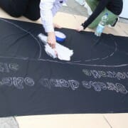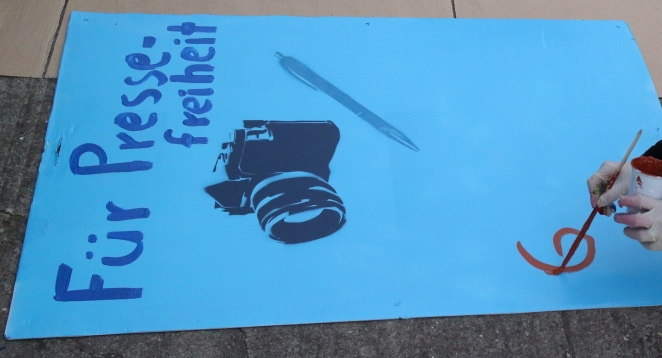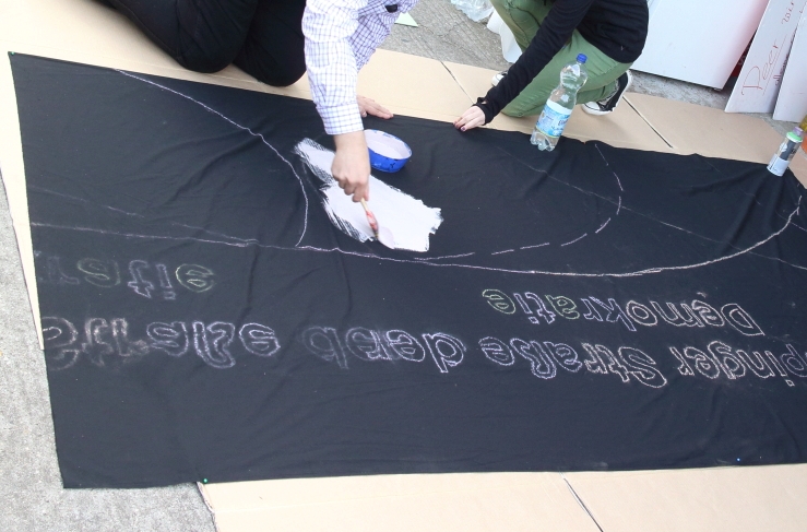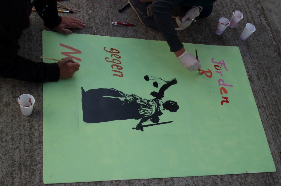 Am gestrigen Samstag trafen sich die KGn-Mitglieder zum gemeinsamen „Maltag“ in Göppingen und nutzten den sonnigen Nachmittag zur kreativen Gestaltung der Göppinger Straße der Demokratie am 12. Oktober. Zwei Großbanner und 20 Plakate, die am Demotag die Bühne und die Marktstraße zieren werden, wurden durch erfreulich viele helfende Hände beschriftet, bemalt und besprüht. Einen ersten Vorgeschmack gibt es in der unten angefügten Bildergalerie zu sehen.