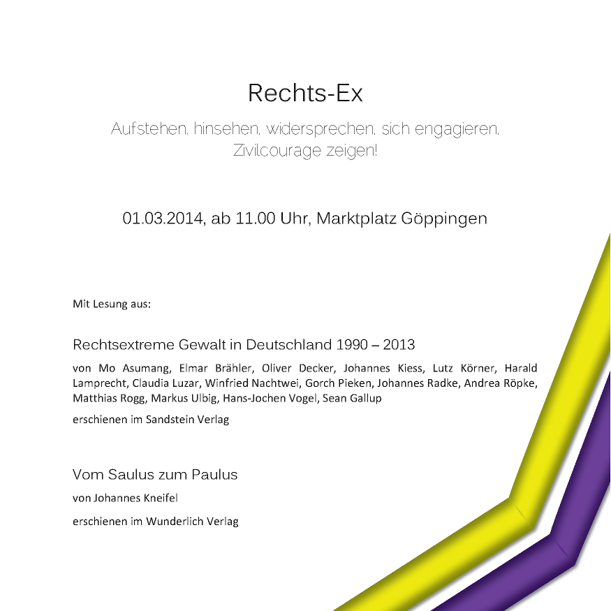 Rechts-Ex – Aufstehen, hinsehen, widersprechen, sich engagieren, Zivilcourage zeigen! am 01.03.2014Oliver Weyhmüller2016-10-18T09:35:34+02:00