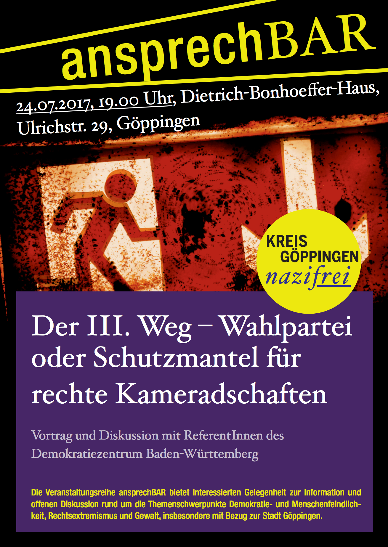ansprechBAR: Der III. Weg – Wahlpartei oder Schutzmantel für rechte KameradschaftenOliver Weyhmüller2018-01-16T08:13:32+01:00