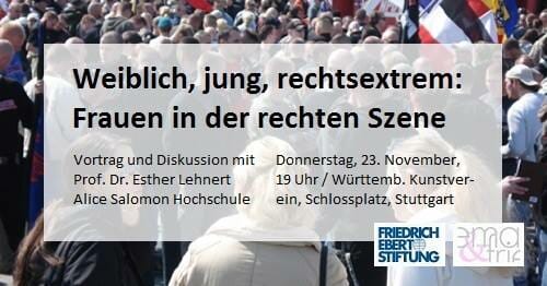 Der Vortrag von Prof. Dr. Esther Lehnert setzt sich mit modernen und/oder traditionellen Inszenierungen von Frauen in unterschiedlichen Bereichen von Rechtsextremismus und Rechtspopulismus auseinander und fragt nach weiblichen Strategien und thematisiert die besondere Gefahr, die von rechtsextremen Frauen ausgeht.