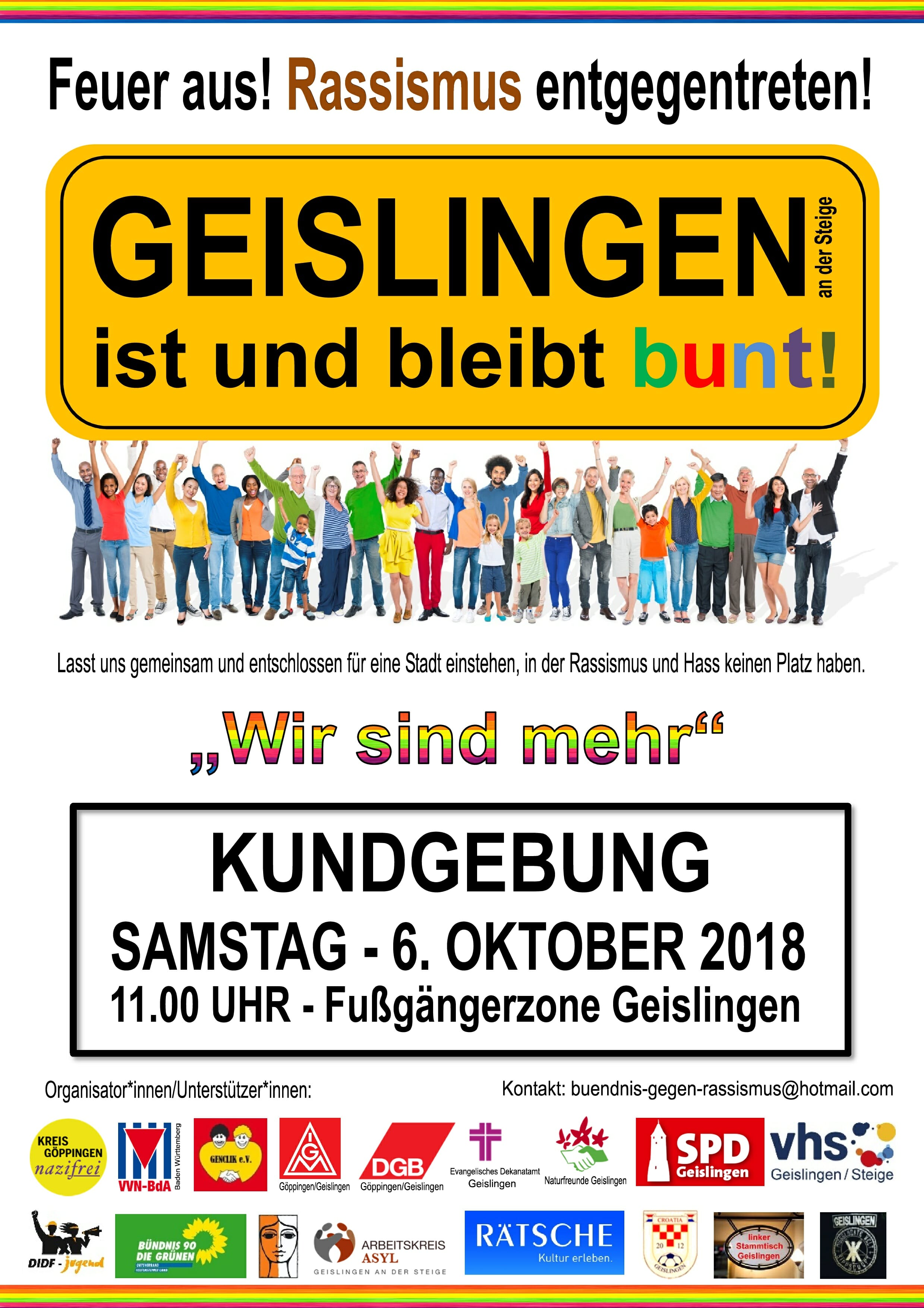 Unsere Sorgen dürfen uns aber nicht lähmen, denn Geislingen ist und bleibt eine vielfältige und bunte Stadt, in der Respekt und gegenseitige Toleranz gelebt wird. Das lassen wir uns nicht wegnehmen.